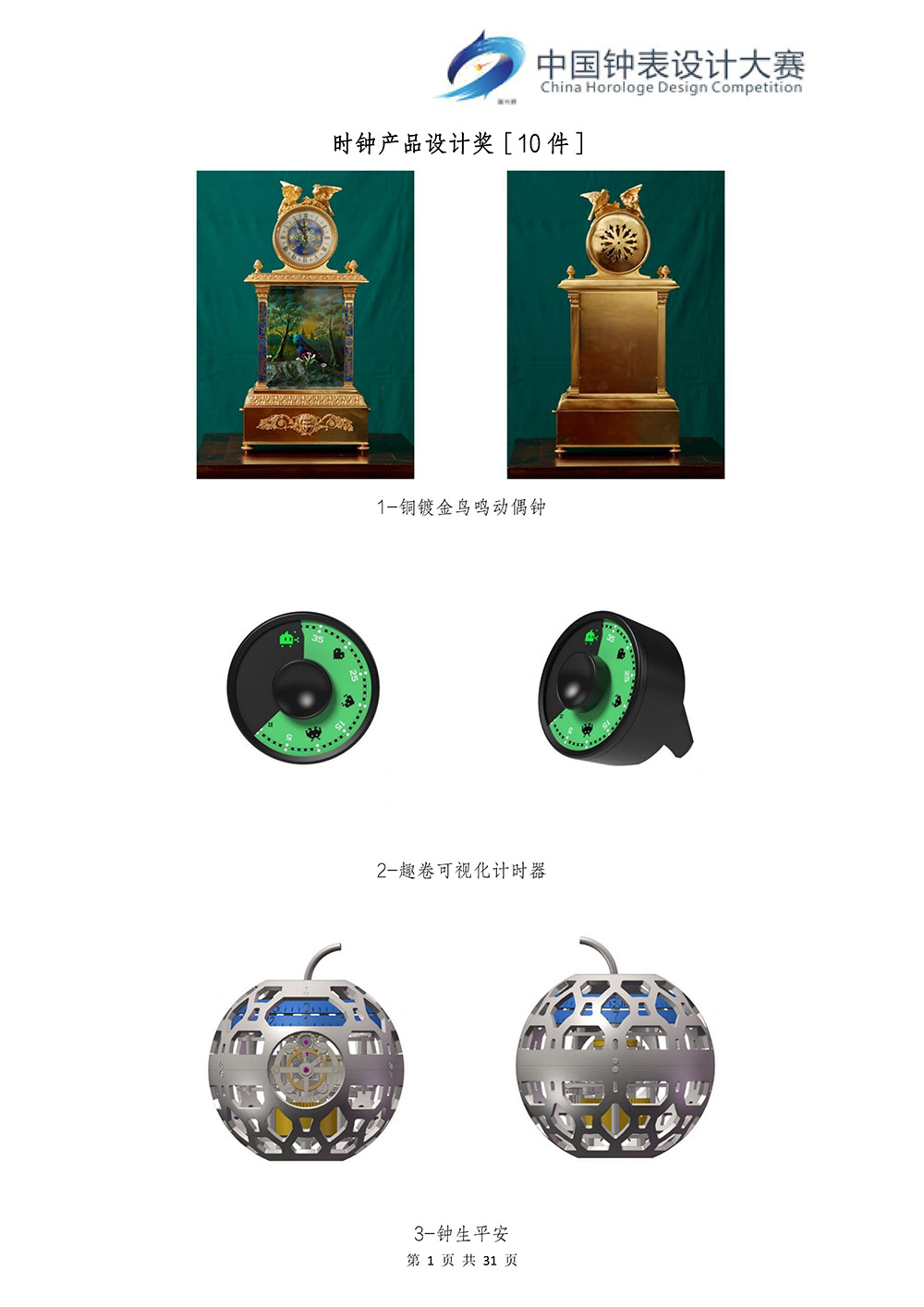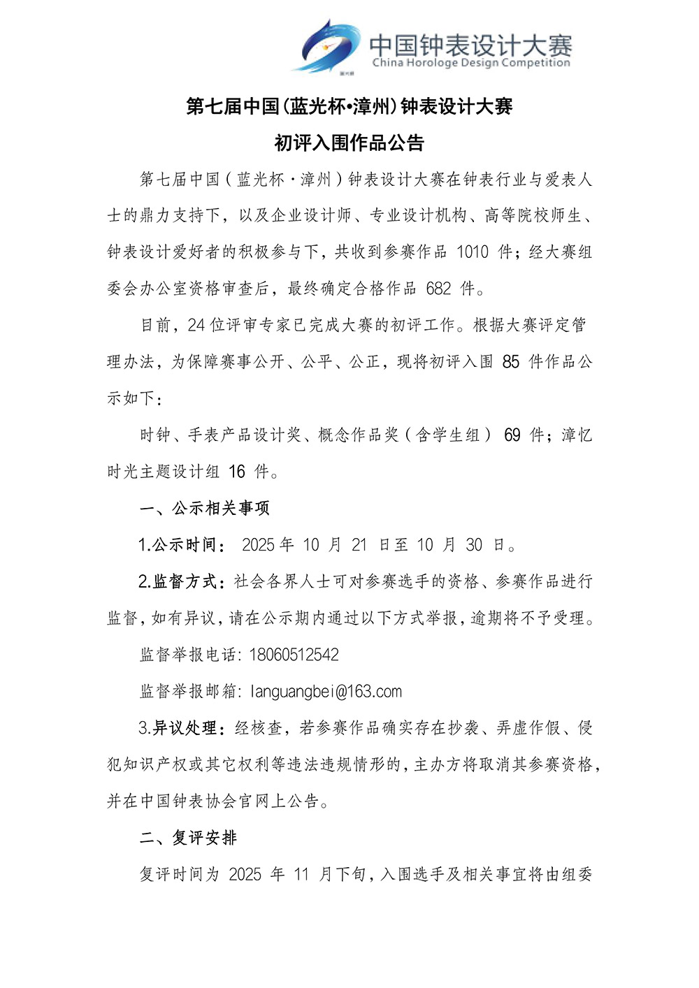 第七届中国(蓝光杯•漳州)钟表设计大赛初评入围作品公告